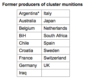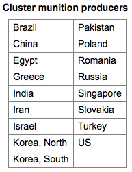 This leaves 17 nations that still either produce cluster munitions or reserve the right to do so as shown on this table: