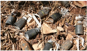 Each submunition is often activated as it falls so it will explode above or on the ground, however, the failure rate of submunitions is high and the unexploded ordinance lie on the ground as shown in this photo: