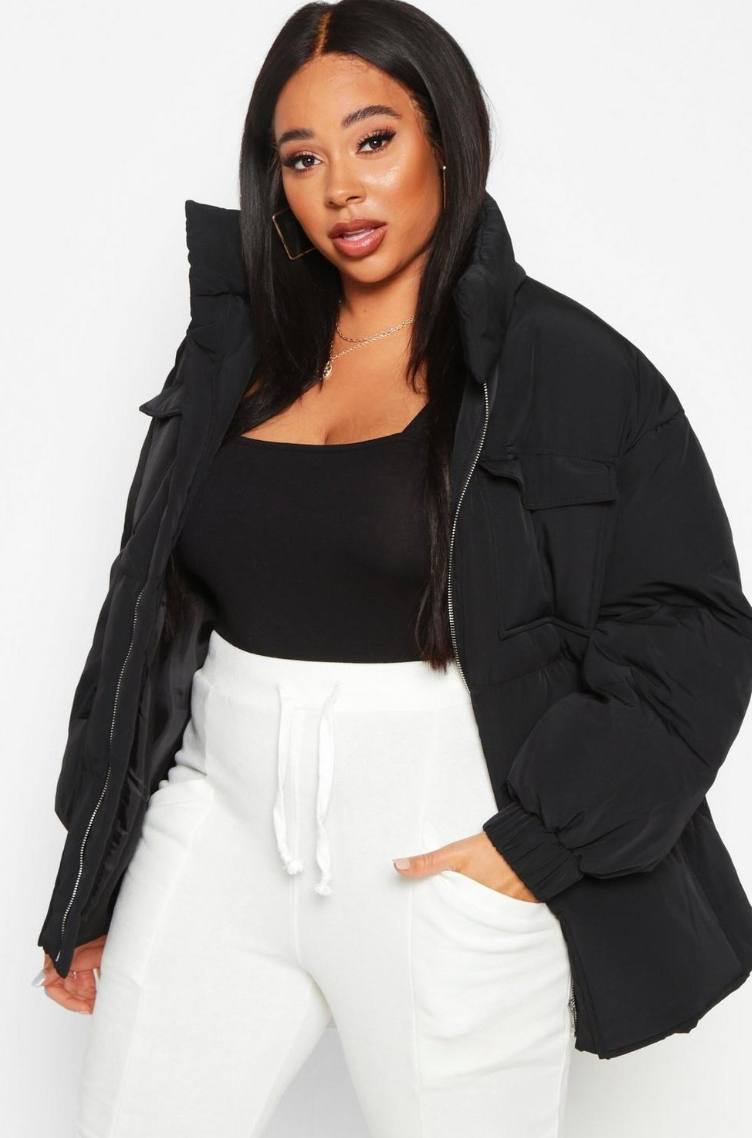 Boohoo Plus Plus Belted Funnel Neck Utility Puffer Jacket, $, available at Boohoo