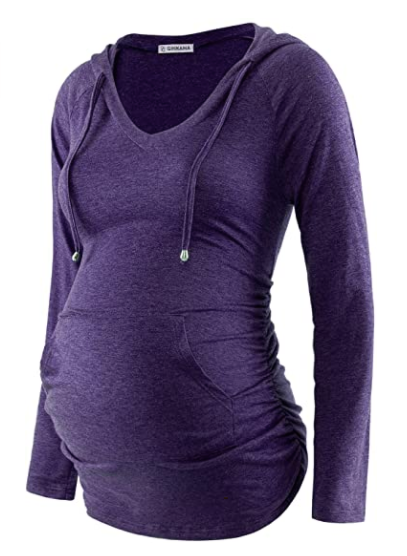 Comfy yoga shorts are a must when expecting. This pair has an expandable rollover waist, making it easy to adjust as your belly grows (or shrinks, postpartum).