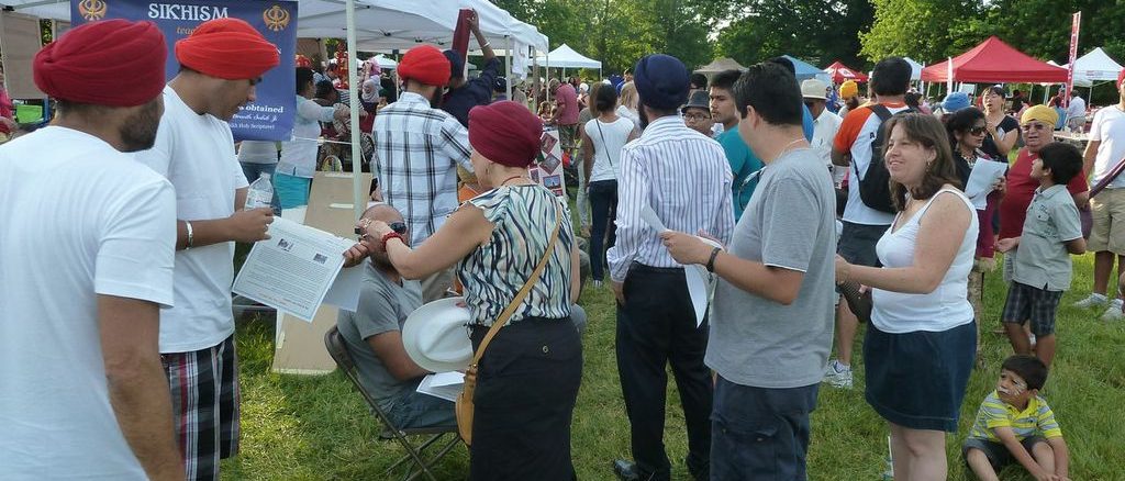 In particular, am always excited about this event as I can instantly relate this concept of multiculturalism to the thought and vision propagated by the Sikh Guru’s in late 1400 AD. Their notion was to evolve a culture that “Rises above Religion and selflessly serves Humanity”; their vision was a world, free of any kind of discrimination. Once again, I was proud to be a part of the Multiculturalism Festival this year hosted by the Halton Multicultural Council (HMC). This time there was something even more sensational, there was a booth for “Turban adorning” which was a unique way of displaying the Sikh ideals and culture at this location.