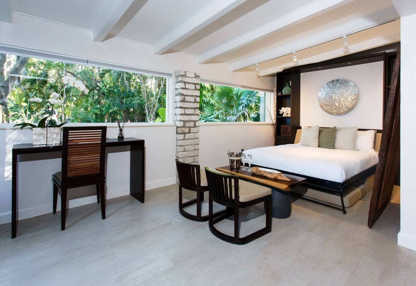 Unwind in a mid-century modern private guest house in the heart of Palm Springs. In addition to its sleek decor, this destination includes a private patio and access to the pool. You may even be greeted by a friendly cat named Chatty Cathy who resides in the property's garden.