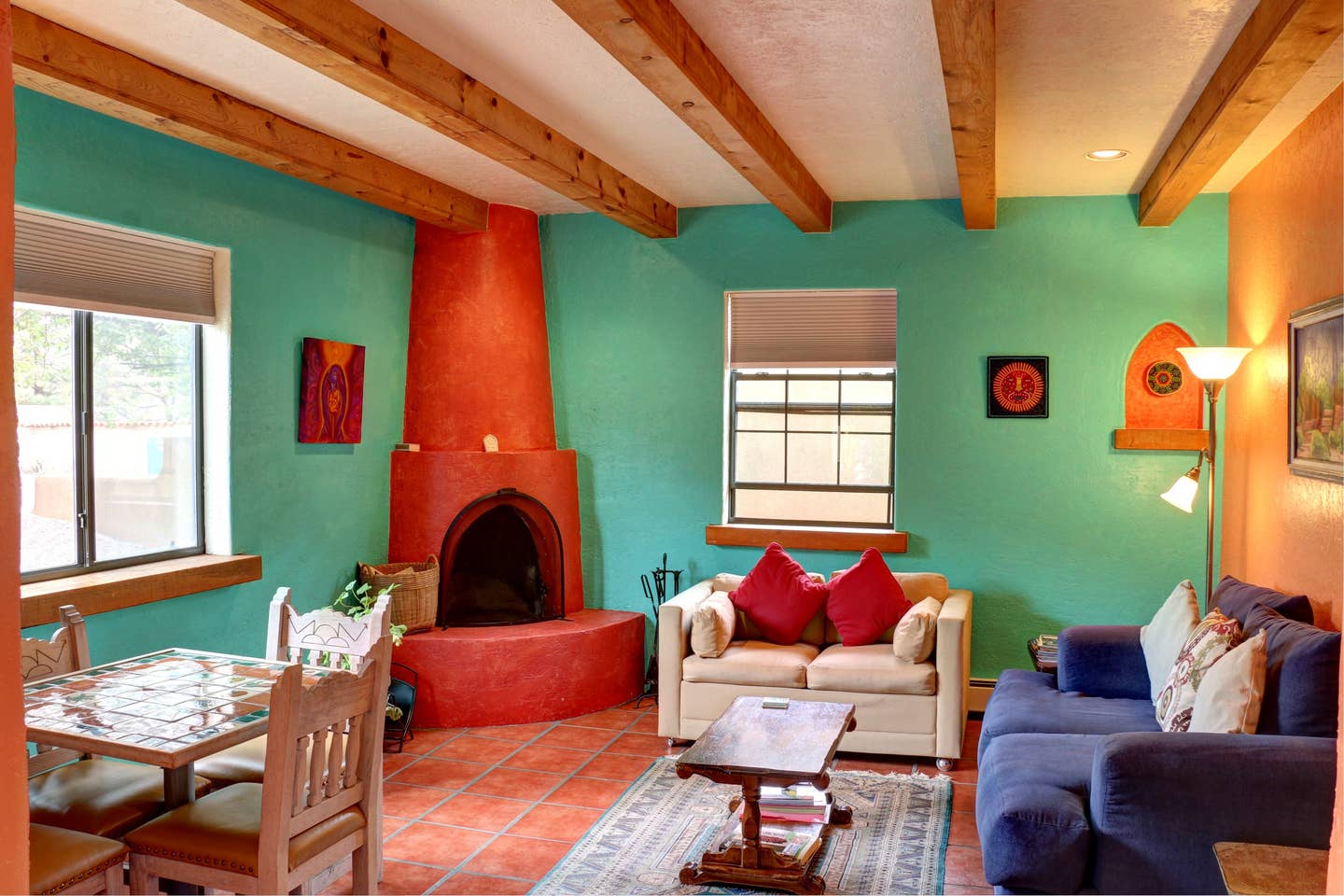 Consider a cozy, comfy stay at this quirky Santa Fe casita that's loaded with charm. Its colorful interior and enclosed patio and yard make for a special and intimate experience, plus you'll be close to the city's eclectic galleries, museums, and picnic spots.