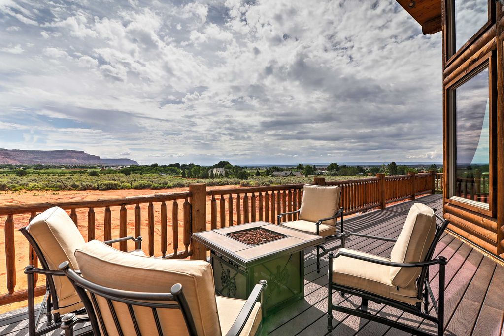 Discover a peaceful country setting in Kanab, known as the hub for many famous natural attractions including the North Rim of the Grand Canyon, Zion National Park, Bryce Canyon, and Lake Powell. The cabin itself boasts more living space than you'll ever need, along with a 60-foot deck and a gas fire pit.