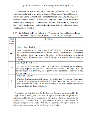 Here is a two page screen capture showing Dagong’s debt ratings system:
