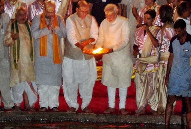 With the party president Rajnath Singh, his party UP chief Lakshmikant Bajpai and his close aide Amit Shah, Modi made a visit to the very popular Kashi Vishwant temple and offered his prayers as a sign of thanks. After that Modi and his companions made a turn towards the Ganga and performed the ‘Ganga Aarti’ at the Dashashwamedh Ghat. After that while addressing the people of India and specially of Varanasi for playing their key role in forming the BJP-led NDA government at the Centre. Modi further added that the people of Varanasi understood his silence and gave their immense support even though he was hindered from asking them for their help. He said that the voters voted for him understanding the roles being played by the rivals.