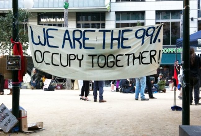 Protesters marched over 1 kilometre singing their slogan “we are the 99 per cent” while over 100 police officers were reporting at the site.