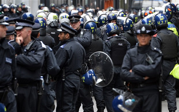 The police operation came as around 150 protesters paraded through central London, banging drums in a “Carnival Against Capitalism” organised by the group Stop G8.