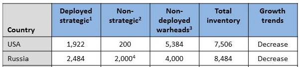 As a bit of background, Russia and the United States have the following nuclear weapons: