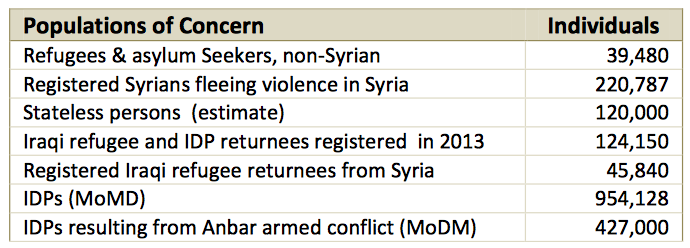 Here is a chart showing the scale of the humanitarian crisis in Iraq, a situation that is particularly grim considering that Iraq is the "beneficiary" of hundreds of thousands of Syrians fleeing the conflict in their own nation: