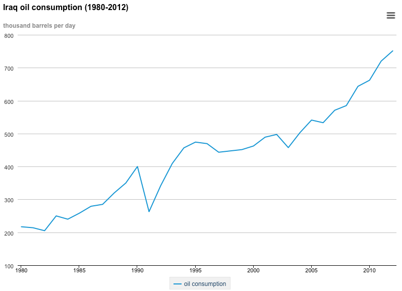 Here is a graph showing domestic consumption of oil in Iraq: