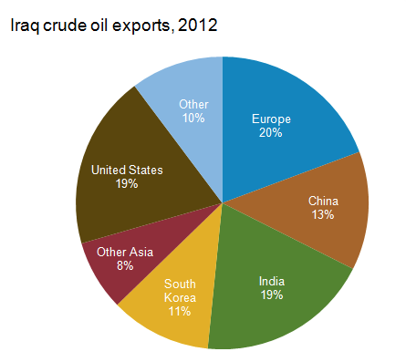 Now, let's take a brief look at who benefits from Iraq's crude exports as shown on this pie chart: