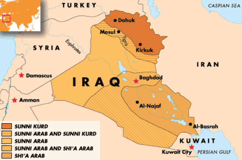 Let's now look at a map showing how Iraq is divided along religious and ethnic lines to help put the remainder of this posting into context: