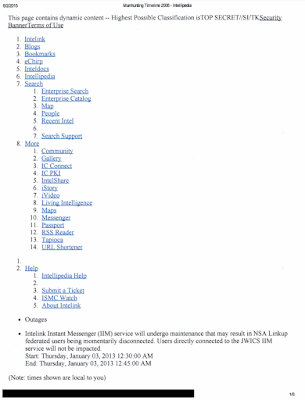Now, let's look at the current information. Here is a screen capture of the partially redacted document which was posted on the NSA's Intellipedia, an internal version of Wikipedia: