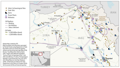 Let's open with a map that shows the types of infrastructure and resources in ISIL's area of operation: