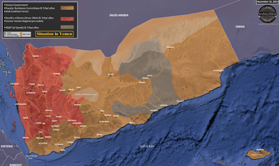 Here is a map showing the current military situation in Yemen: