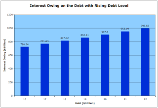 With a historically accurate 12 year average interest rate of 4.539 percent, the interest owing on the debt rises by $45.39 billion for each $1 trillion increase in the level of the debt. By the time Washington’s debt reaches $22 trillion, the annual interest owing on the debt at the above noted level will nearly reach the trillion mark and would consume all of the 2011 revenue from individual taxes.