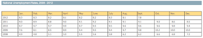 Let's open by looking at a chart showing the unemployment rate for the last five years from the National Conference of State Legislatures: