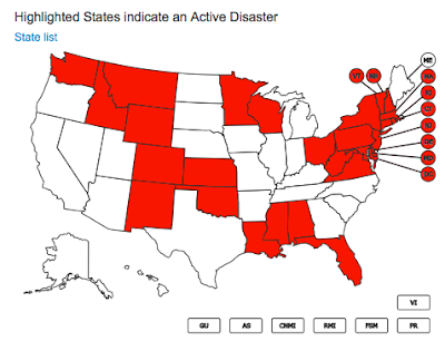 As the days pass between now and the November 6th election, it will be interesting to watch the interplay between the incumbent president, his Republican competitor and the governors of the Hurricane Sandy-ravaged states as the need for federal assistance becomes more and more apparent. And, just in case you've forgotten, here's what Mr. Romney had to say about FEMA during a Republican candidates debate earlier this year, suggesting that he would put FEMA in the hands of the private sector: