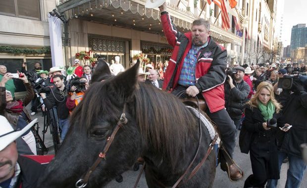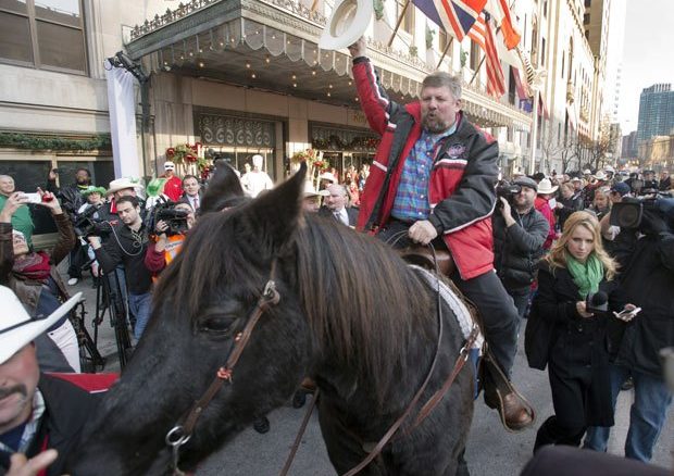 All the press, media and fans crowded the entrance of the hotel at the time of Marty’s arrival as a member of Calgary’s Grey Cup committee rode the beautiful traditional dark brown horse steering it right up to the rotating glass doors and demanded entry. Dressed in a red-and-black jacket of Stampeders and a white cowboy hat, Clad, announced in a loud voice that “this is Calgary tradition. [We want] to start the party… It will be good luck, as far as we’re concerned.” However, the events somewhat folded in a manner that might be considered a good news for the Argos.