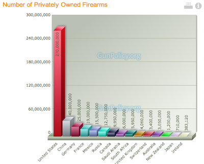 In light of recent mass shootings in the United States, I thought I'd do a brief posting on the subject of gun ownership in America.  For my source material, I am using data from the GunPolicy.org website.  Please note that GunPolicy.org is hosted by the University of Sydney School of Public Health in Australia and promotes the public health model of firearm injury prevention.  Research for this website is supported by the Netherlands Ministry of Foreign Affairs and the Swiss Federal Department of Foreign Affairs.  Let's look at some of the data.