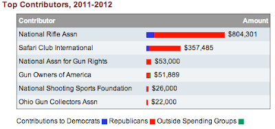 Here is a list of the top 20 Members that received financial support from the gun rights lobby in the latest election cycle and how much they received: