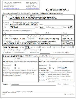 Lastly, here is a screen capture showing page one of the Lobbying Report for the NRA for the third quarter of 2012: