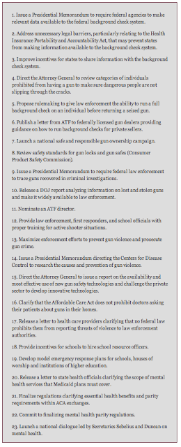 Just in case you didn't catch them all, here is a list of the 23 Executive Orders signed by the President in an effort to address gun crime: