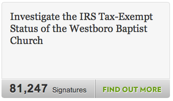 Interestingly, all three were created by different individuals in vastly different parts of the United States. Westboro Baptist Church also appears near the top of the list two additional times. Since the all three of these petitions surpassed the original 25,000 signature cutoff, a response will have to be issued by the White House. That one will be interesting!