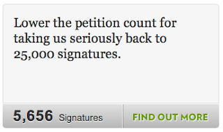 For those of you who aren't aware, the We the People website was launched in September 2011 so that ordinary, Main Street Americans would have an opportunity to petition the U.S. federal government about issues that concerned them, a right that is guaranteed by the First Amendment to the Constitution. Once these online petitions have received 150 signatures, they are searchable on the We the People website. Originally, to receive a response from the White House, petitions had to receive 5,000 signatures in 30 days; this was increased to 25,000 in October 2011 and further to 100,000 in January 2013. In order to participate as a petitioner or signatory, users must create a WhiteHouse.gov user account and must be 13 years of age or older. Users must also agree that they will not create petitions that contain threats of unlawful violence or harm to another individual or group, they must not be lewd, vulgar or obscene, the must not contain terms that are considered profanities and they must not be defamatory.