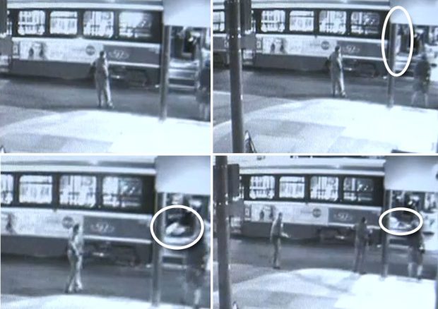 The video seems to show a cellphone recording of a security camera monitor from the northwest corner of Dundas West and Bellwoods Avenue, describing a clear scene of Yatim aggressively shrugging towards police with a knife in hand. However, since there is no audio in that security camera footage, other videos have led to the determination of someone saying, “You’re a p—-. You’re a f—- pussy” at that time while police keeps on warning that “drop the knife!” Consequently, it is visible that Yatim then backs off behind the driver’s well, and leans towards the first row of seats.