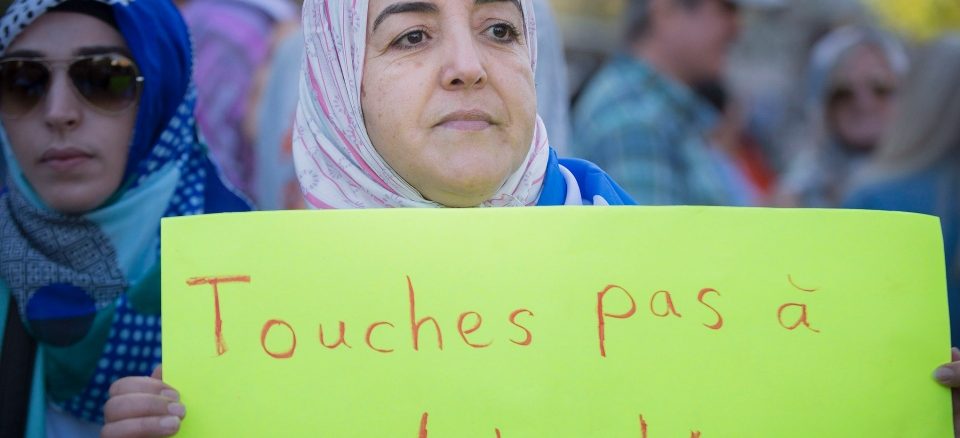 More than several hundred demonstrators marched in downtown Montreal in order to express their condemnation of the proposal of the controversial Charter of Quebec Values, which aims at banning public employees from wearing prominent religious symbols, including headscarves and turbans, in the workplace.