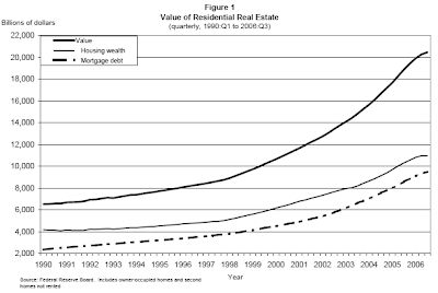 "The rise in the market value of homes since the early 1990s has led to a substantial increase in the level of housing wealth (figure 1). However, since the mid-1980s, mortgage debt has grown more rapidly than home values, resulting in a decline in housing wealth as a share of the value of homes (figure 2)."