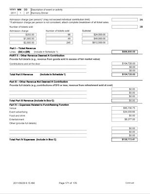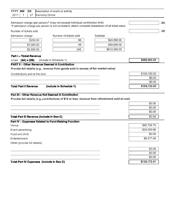 A total of 245 tickets were sold at $2,500 each, bringing in $612,500 along with 49 peasants who paid only $1000 and another 98 cheapskates who paid $250.00 to attend the Harmony Dinner. As well, over $104,000 in donations was collected at the door.