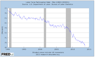 Now, let's look at the labor force participation rate statistics for men from 1990 to the present: