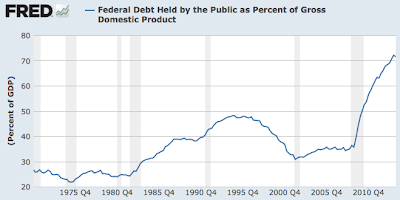 At its level of 71.46 percent in the second quarter of 2013, the level of debt held by the public is also now at its second highest level, falling just short of the 72.1 percent level seen in the first quarter of 2013. Looking way back to the first quarter of 2009 when President Obama's dream was still alive, the publicly held debt-to-GDP level was a "measly" 47.54 percent.