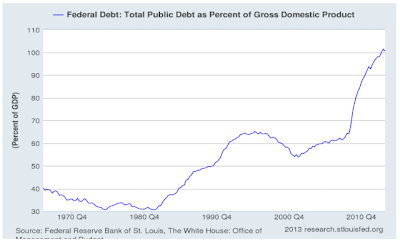 At its level of 100.46 percent in the second quarter of 2013, the level of debt is now at its second highest level, falling just short of the 101.43 percent record level seen in the first quarter of 2013. To put these numbers into perspective, when President Obama took office in January 2009, the debt-to-GDP level was a "mere" 77.37 percent.