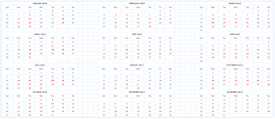 Here is a calendar showing the days that the House sat during the First Session of the 113th Congress (excluding part of December):