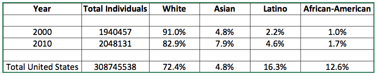 In the Higley 1000, there are a total of 2,048,131 individuals, consisting of 0.6 percent of the total population of the United States. Here is a look at the ethnic breakdown in 2000 and again in 2010: