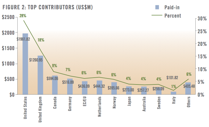 Let's close with a graph that shows the top contributors to Afghanistan's Reconstruction Trust Fund (ARTF) as of the end of 2013 (note that SY stands for Solar Year where SY 1381 is the period between March 21, 2002 and March 20, 2003):