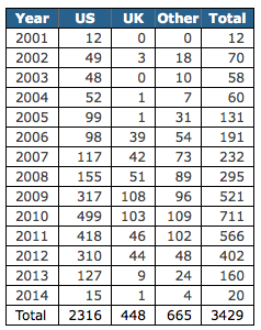 The cost to Afghani civilians has also been very high. According to The United Nations Annual Report on Afghanistan for 2013, deaths and injuries among Afghani civilians has been very high for many years as shown on this graph: