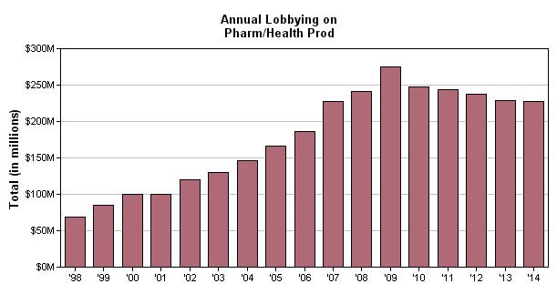 Given the economic power of the for-profit medical system in the United States and the long-running battle against the Affordable Care Act, it is interesting to see that at least one part of the legislation is providing American healthcare consumers with information that is enlightening. Given that "Big Pharma" spent $227,808,563 on lobbying in 2014 (which puts them in first place among all 121 industries) as shown on this graphic: