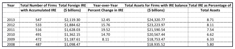 By the end of 2013, U.S. companies in the Russell 1000 (the large capital segment of the U.S. equity market) held a total of $2.119 trillion in overseas earnings, up by 93 percent from $1.098 trillion in 2008. It is also interesting to note that the number of companies using this tax strategy grew from 472 in 2009 to 547 in 2013. As well, as a percentage of total assets, IRE balances have risen from 5.8 percent in 2008 to 8.71 percent in 2013. It is these earnings that the Obama Administration is targeting with its"transition toll charge". The administration has proposed a one-time toll charge of 14 percent on untaxed foreign retained overseas earnings, regardless of whether or not the earnings are repatriated, which would bring in an estimated $238 billion that would be allocated directly to the Highway Trust Fund to be used to repair the badly decaying national transportation infrastructure.