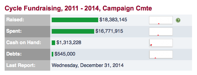 You will note that Mr. Cruz received well less than Josh Mandel (R-OH) who received just over $5.23 million. Despite spending$18.87 million on the Ohio Senate race, Mr. Mandel lost to Sherrod Brown who spend $24.58 million.