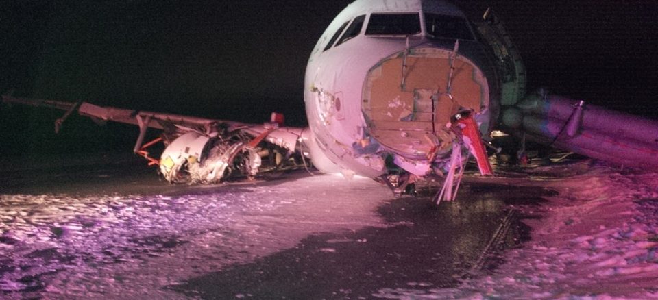 Authorities have confirmed the details of today’s incident when an Air Canada flight skidded off the runway during a clash landing due to the snowstorm in Halifax early Sunday. The incident led to more than 23 shaken passengers and crew sent to local hospital with minor injuries. Passengers explain that the plane hit the runway hard at Stanfield International Airport at about 12:45 a.m. local time, after which it skidded on its belly for about 30 seconds before it came to a halt. Thereafter, the passengers immediately evacuated the plane through emergency hatches and escaped the volatile crash site.