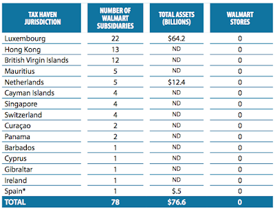 You will notice that there is not a single Walmart store located in any of the nations on this list and that Walmart has $64.2 billion in assets held in Luxembourg where it has zero stores. While Spain is not generally considered to be a tax haven, it appears that it was used by Walmart to avoid taxes on its operations in Argentina.