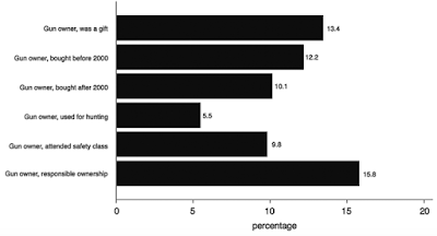 By answering "yes" to any of the above questions, the authors determined that the individual respondent was exposed to gun culture. Of the 4000 individuals, 528 or 13.7 percent reported a "yes" answer to at least one of the social gun culture questions and 0.8 percent reported a "yes" to all four of the social gun culture questions.