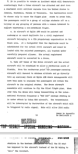 3.) Cuban Terrorism: The JCS recommends developing a Communist Cuban terror campaign in the Miami area, other cities in Florida and in Washington. This campaign could be pointed at Cuban refugees who were seeking asylum in the United States and could go as far as sinking a boatload of Cubans enroute to Florida or exploding a few plastic bombs in carefully chosen spots.