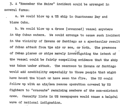 Notice that the JCS recommends the use of fake casualty lists associated with this action in United States newspapers to rally public support for military action against Cuba.