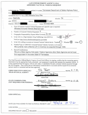 If you are interested, you can go through the entire listing of 466 police departments throughout the United States to see if a police department near you has requested added protection from the general public.  It is no wonder that it is increasingly appearing as though it is an "us" against "them" when America's police forces deal with the general public who is paying and has paid for this equipment with their tax dollars.